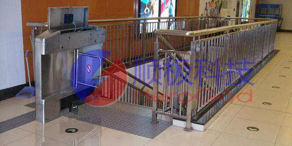 华腾商厦位于荣事达大道,其不锈钢门禁闸机系统全部钢材采用304不锈钢,通体1.5厚度,护栏造型大方,与地下通道进出口不锈钢工程融为一体。