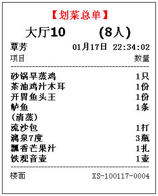 传单快:只需几秒钟,点菜单就能传送到各厨房打印机。